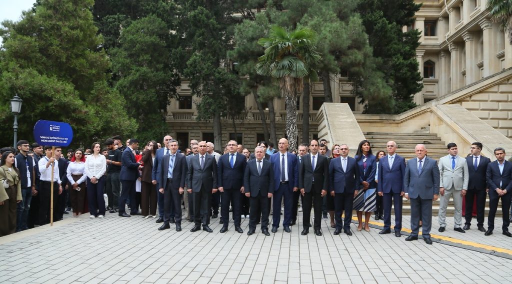 Əvvəlcə universitetin foyesində ulu öndər Heydər Əliyevin büstünün önünə güllər düzülüb. Daha sonra Azərbaycanın ərazi bütövlüyü və suverenliyi uğrunda canlarından keçmiş Vətən övladlarının xatirəsi bir dəqiqəlik sükutla yad olunub, Dövlət Himni səsləndirilib.